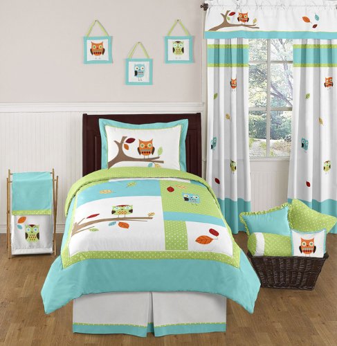 Turquoise and Lime Hooty Owl Childrens and Kids Bedding Set 4 pc Twin Set by Sweet Jojo Designs