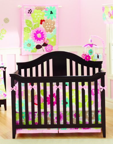 The petals 4 piece crib bedding set helps creates a vibrant and magical environment for your little girl's nursery. The 4 piece bedding set offers a better way to sleep with an innovative one piece crib snug wrap that protects baby from crib slats while keeping your crib looking beautiful. Also included is 1 fitted sheet, crib skirt and beautiful appliqued comforter with rod pocket for placement as wall design.