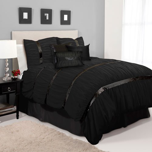 Lush Decor Glitter Sky 7-Piece Comforter Set, Black Queen Feature