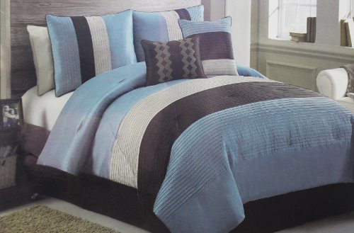 Read more 6 Pc Blue, Brown, and Beige, Striped, Bed in a Bag, Comforter Set, King Size Bedding By Plush C Collection